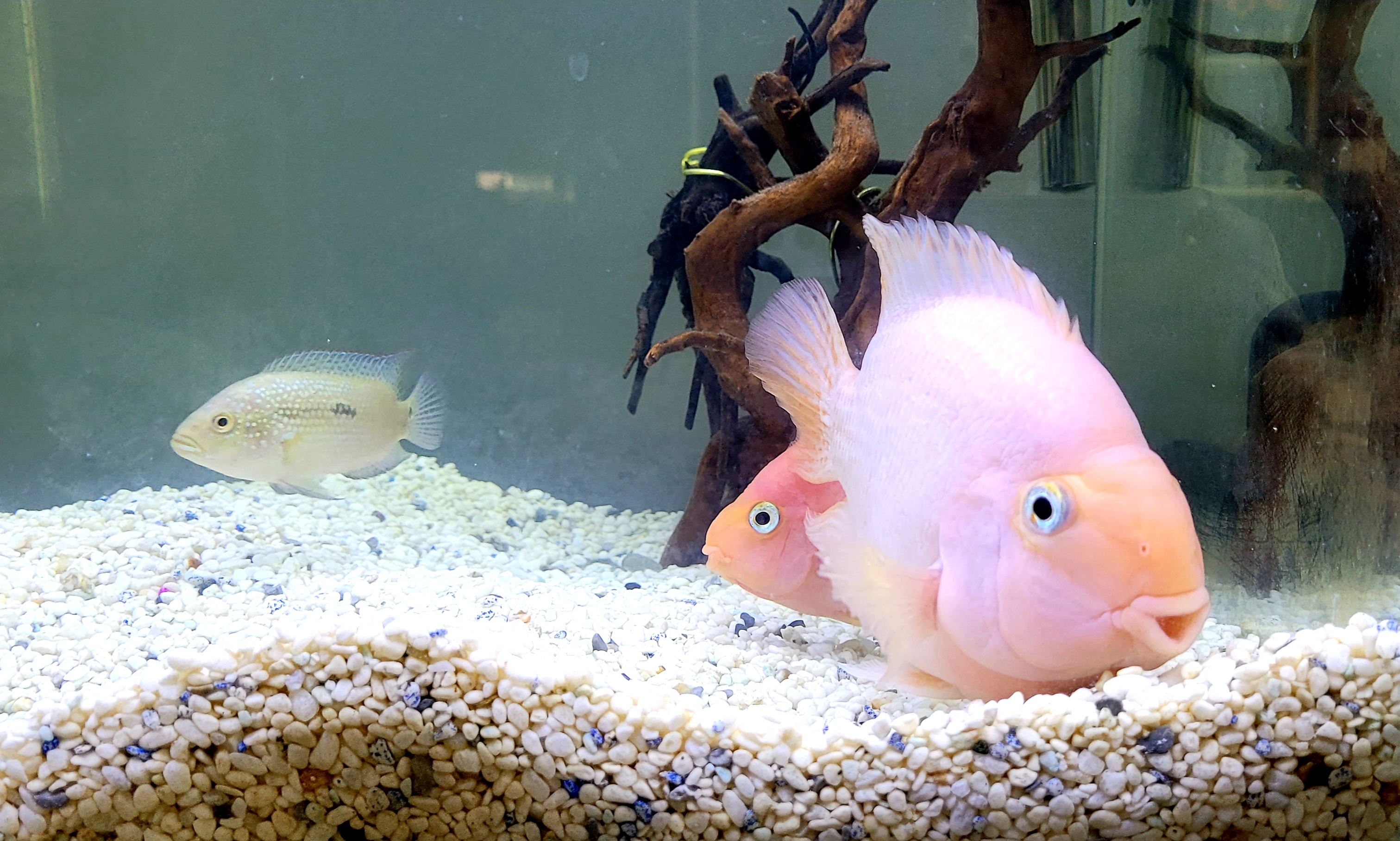 혈앵무 4마리를 한 수족관에서 키웠었는데 덩치가 커지면서 심하게 상처가 날정도로 서열싸움이 심해서 2개의 수족관에 2마리씩 넣어놓은 다음에는 서열정리가 빨리되어 2마리씩 두 집에서 잘 지내고 있음..